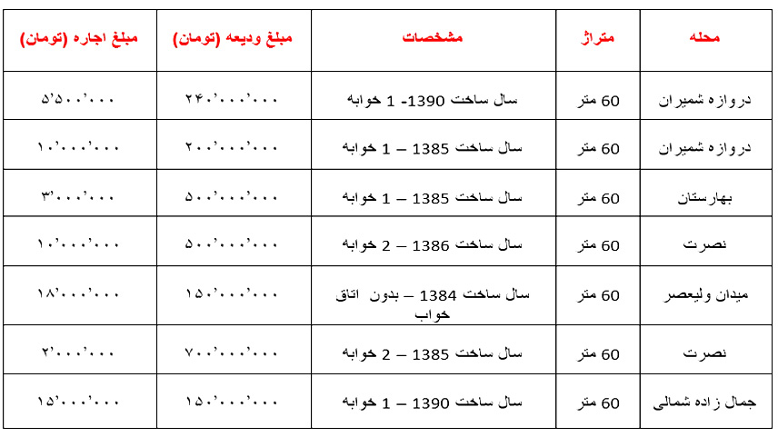 اجاره خانه ۶۰ متری در قلب تهران چند؟ + جدول