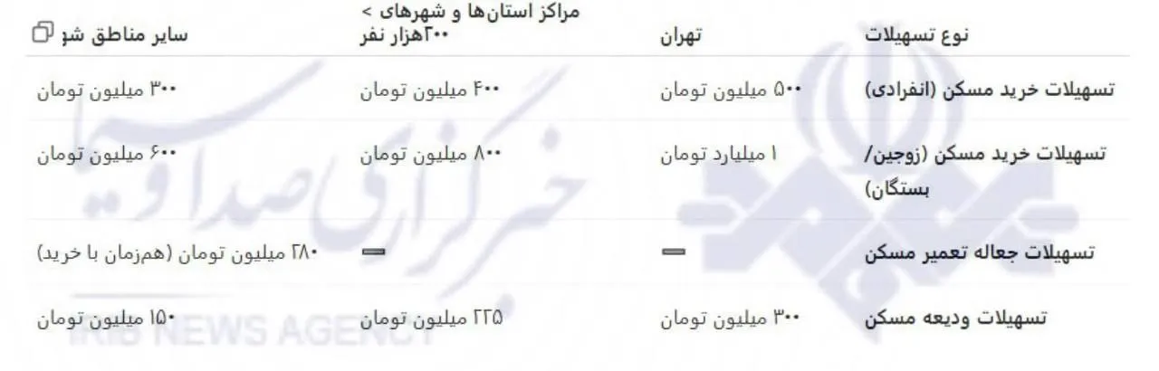 سقف تسهیلات جعاله تعمیر مسکن نیز به ۲۸۰ میلیون تومان افزایش یافت.