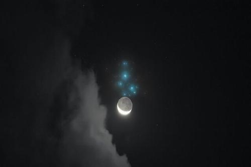 ماه گاهی اوقات از «خوشه پروین»(Pleiades) بازدید میکند. از نظر فنی، این بدان معناست که مدار ماه آن را مستقیما در برابر خوشه ستارهای معروف در دوردستها میبرد.
