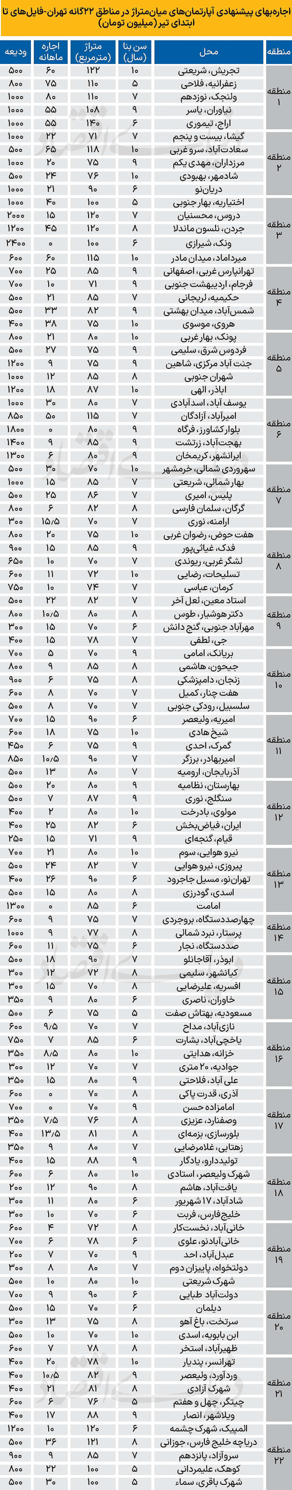 نبض اجارهبهای تهران حاکی از پیشی گرفتن وزن پولپیش به اجاره ماهانه در هفتههای آتی است. بر اساس شاخص اجاره مسکن، میانگین اجارهبهای پیشنهادی واحدهای مسکونی در محلههای منتخب مناطق 22گانه تهران، از خرداد ماه تا ابتدای تیر به سطح 17میلیون و 800هزار تومان اجاره ماهانه برای مستاجران و 671 میلیون و 900هزار تومان پولپیش رسیده است. این ارقام اجاره، میانگین فایلهایی است که برای همه واحدهای مسکونی میان متراژ با میانگین 88.8 مترمربع و عمر بنای 7.8 سال مورد سنجش قرار گرفته و به معنای اجارهبهای قطعی در بازار اجاره نیست. با احتساب این سنجش، میانگین «اجارهبهای پیشنهادی» واحدهای مسکونی در محلههای منتخب مناطق 22گانه تهران با رقم 430هزار تومان اجاره ماهانه در هر مترمربع با احتساب پولپیش صفر اجاره داده میشود. بر اساس این شاخص، تغییرات اجارهبها در تهران در ابتدای تیر رشد ماهانه 2درصدی را نسبت به ابتدای خرداد نشان میدهد که البته در مقایسه با رشد اجارهبهای ماهانه در سالهای قبل کمتر است و حتی سرعت رشد آن نسبت به ماه گذشته (با رشد 2.5درصد) نیز روند کاهشی را نشان میدهد.