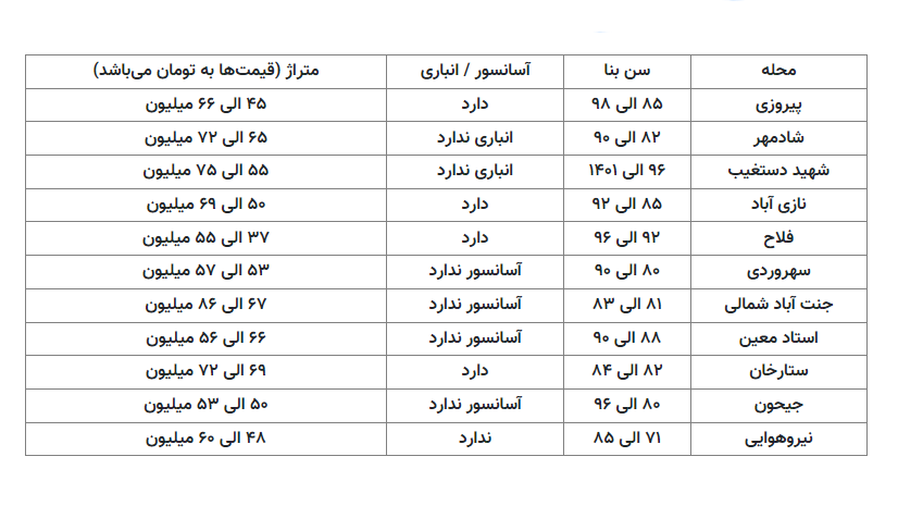 خانه های ۲۰ سال ساخت در تهران متری چند؟+ جدول