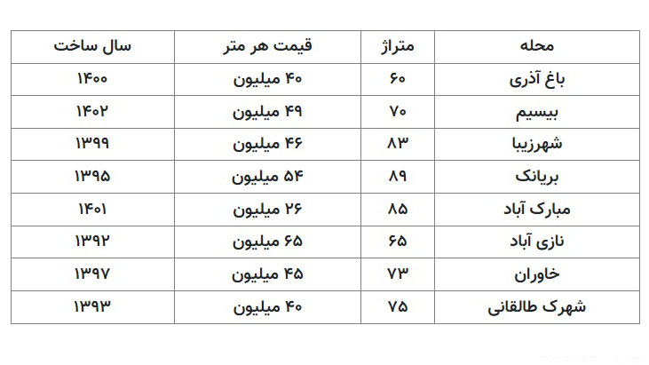 قیمت مسکن در تهران روی ریل نزول + جدول