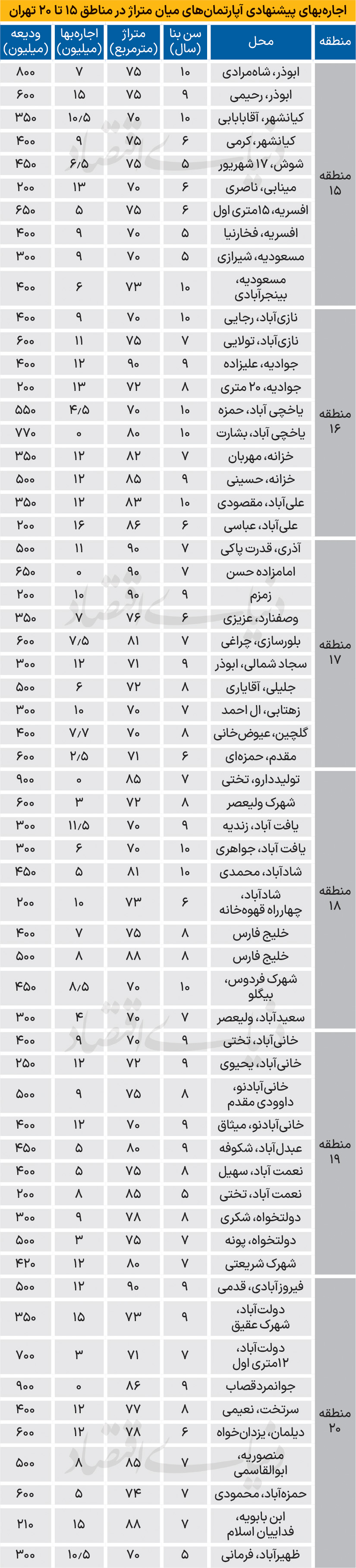 به گزارش اخبارساخته ها؛ سنجش نبض بازار اجاره در ۶ منطقه جنوب شهر تهران، حاکی از «زمستانی شدن»، این مناطق پایتخت در تابستان داغ است. بررسیهای «دنیای اقتصاد» از بازار اجارهبهای آپارتمانهای میانمتراژ با سن بنای ۷.۸ سال از محله منتخب مناطق ۱۵ تا ۲۰ در جنوب تهران نشان میدهد، میانگین «اجارهبهای پیشنهادی» فایلهای ارائه شده به بازار آنلاین اجاره در این مناطق، ۸ میلیون و ۴۰۰هزار تومان اجاره ماهانه برای مستاجران با پولپیش ۴۴۲ میلیون و ۵۰۰هزار تومان است. تحقیقات میدانی حاکی از عرضه بسیار کم فایلهای اجاره آپارتمانهای میانمتراژ است که نسبت به تابستانهای گذشته، کاملا معکوس عمل کرده است.