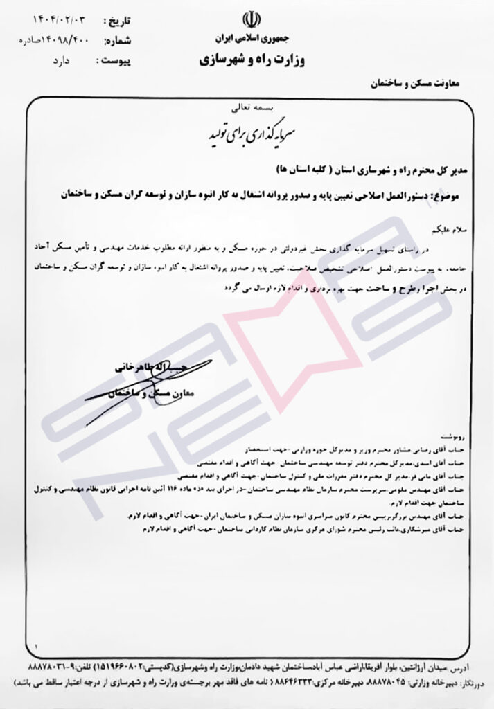 دستورالعمل 1404 صدور پروانه انبوه سازان ابلاغ شد