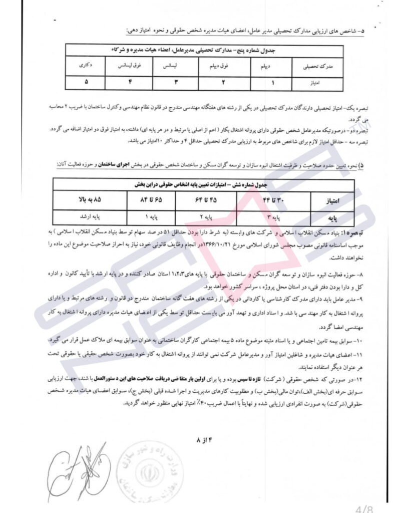 به گزارش اخبارساخته ها؛ با ابلاغ این اصلاحیه، تغییرات مهمی در فرآیند صدور این پروانهها ایجاد شده و تسهیل فعالیت فعالان این حوزه، بهطور رسمی به اجرا درآمد. بر اساس این اصلاحیه، امضای اسناد تعهدآور به اعضای هیأت مدیره دارای صلاحیت تفویض شده و تعریف پروانههای صلاحیت “طرح و ساخت” برای پایههای ارشد و یک در دستور کار قرار گرفته است. همچنین شرایط دقیقتری برای سرپرستان کارگاه در پروژههای اجرا و طرح و ساخت تعیین شده است.